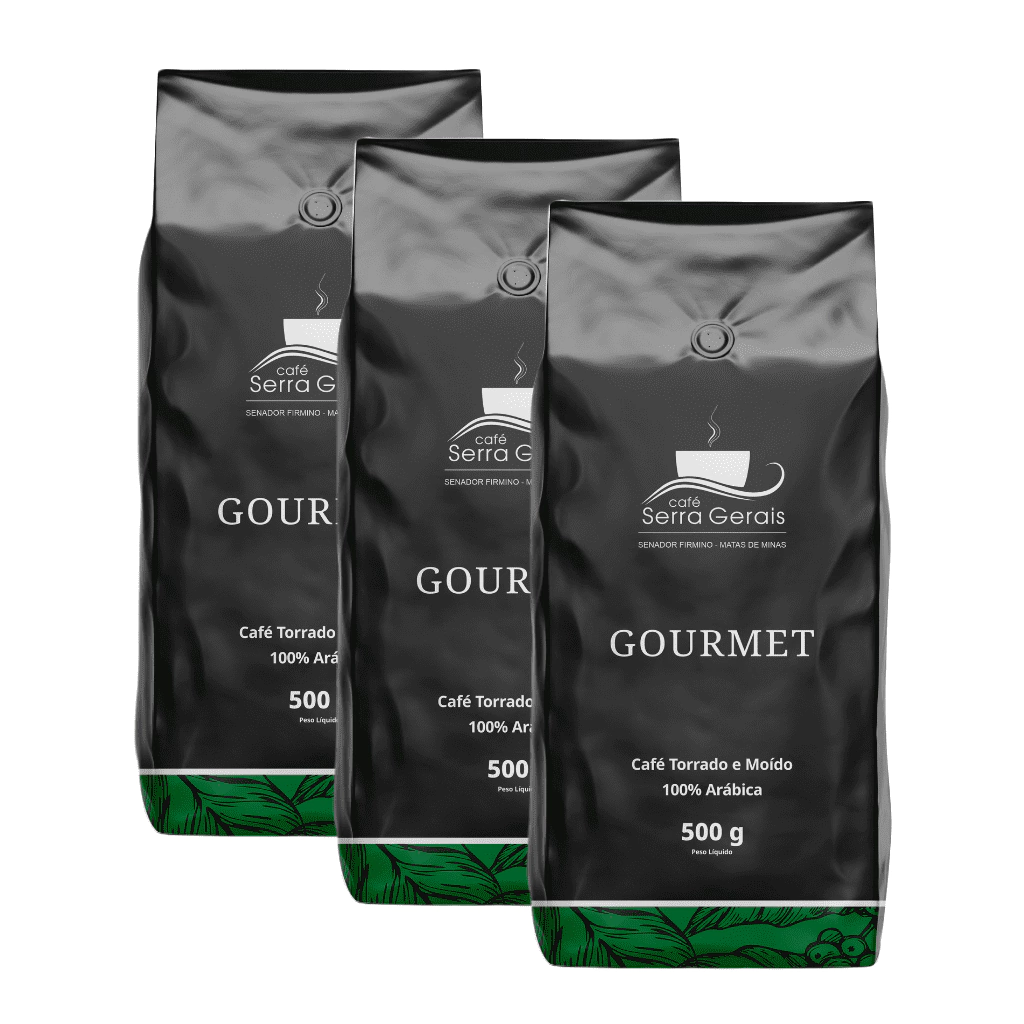 03 Pack Café Gourmet Serra Gerais com 500g com moagem média própria para o método filtrado.
